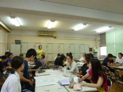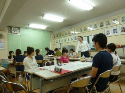 放課後は、全員で今日の研究授業について考える、研究討議会です。