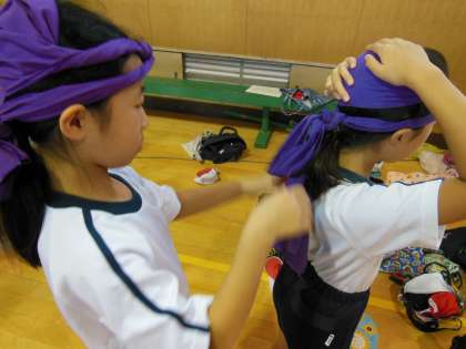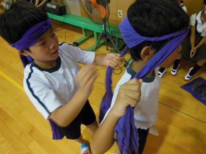 4年生☆マンサージを巻いての運動会エイサー練習〜1〜
