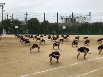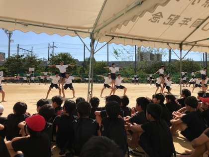 9月28日(金)5時間目に、6年生と団体演技の見せ合いをしました。6年生からは大きな拍手と歓声をもらい、運動会本番を前に大きな自信を得られました。