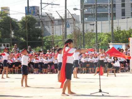 応援団は、運動会を盛り上げるために、放課後も残って練習してきました。