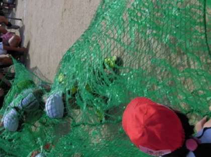 ハードルを飛び越え、ネットをくぐり、2個の玉を投げて玉入れのカゴにはいらなければ、ドンゴロスをはいてピョンピョン飛ばなければなりません。