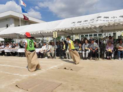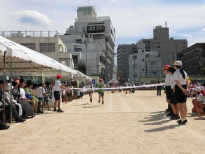 4年生の団体競技「菅原バトル」障がい走です。