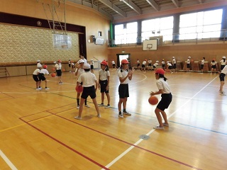 バスケットボールの基本的な技術を教えていただき、子ども達は、楽しみながらドリブルやシュートに取り組んでいました。