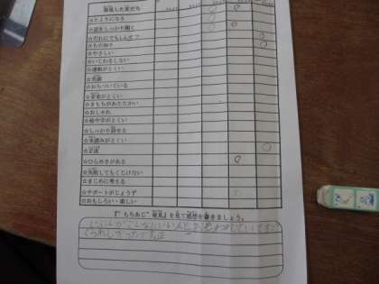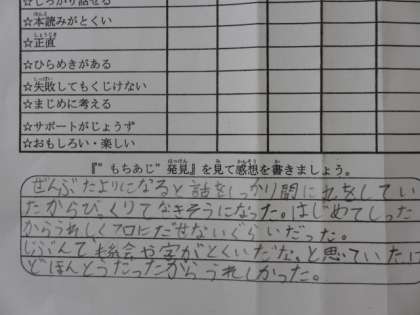 班の友だちにいいところを見つけてもらって、とてもうれしそうにしていました。