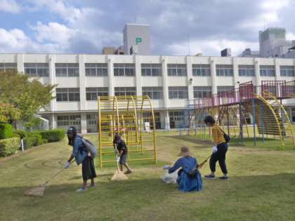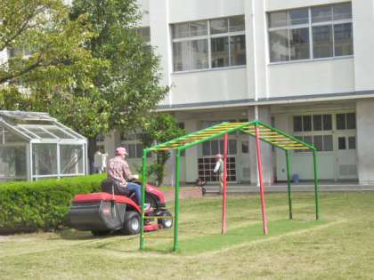 10月14日(日)。地域・PTAの方々が、芝生の手入れをしてくださいました。