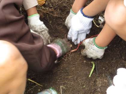 月曜日は、おいもほりをしました。お芋は豊作とは言えませんでしたが、ごろごろ出てくるお芋に、テンションアップ!!
