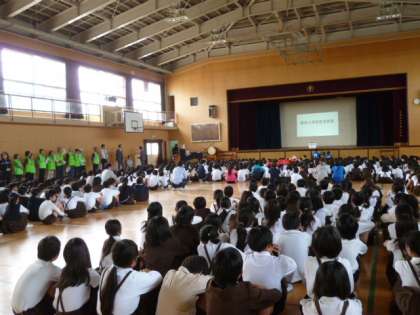 子どもたちは、整然と、無言で、迅速に講堂へ避難しました。