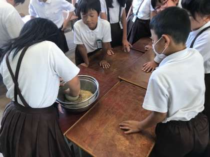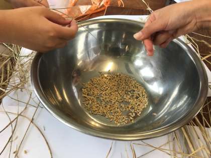 10月いっぱいは各班で協力して籾摺りを続けます。果たしてどれくらいのお米がとれるのでしょうか?