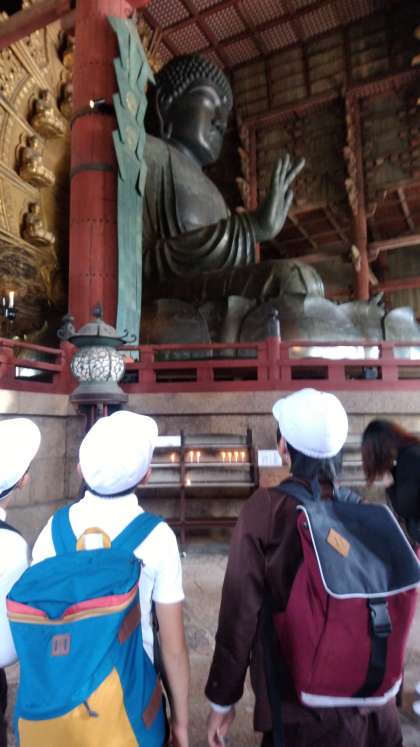 奈良方面へ遠足に行って来ました。鹿と触れ合いながら奈良の街並みを楽しみました。東大寺では大仏の大きさに子ども達はビックリ!!たくさん歩いた後は、広い芝生でお昼を食べました。天候にも恵まれ、楽しい遠足になりました。