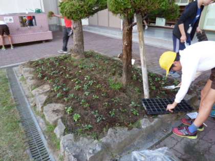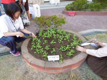 飼育栽培委員会の児童が植え込みました。これから、大切に世話をしてくれることと思います。花いっぱいの菅原小学校になあれ!!