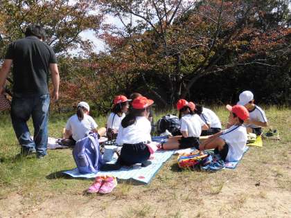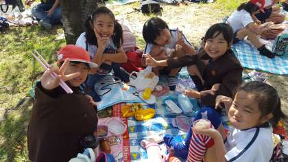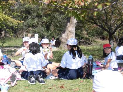待ちに待ったお弁当の時間は、友だちと一緒に楽しく食べていました。