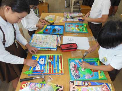 10月25日(木)の2・3時間目に図工でコリントゲームのくぎ打ちをしました。子ども達は集中して、くぎをトントン打ち、完成させることができました。