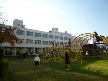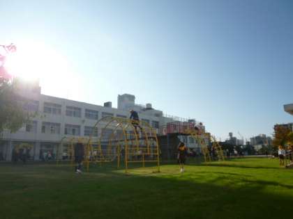 登校した子どもたちは早速駆け出し、青々とした芝生の感触を楽しんでいました。