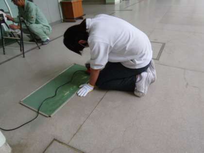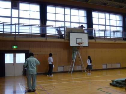 作品展で絵画作品を展示するための、ワイヤーロープはり。それから掲示板の修理作業など。本当によく働いてくれました。