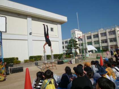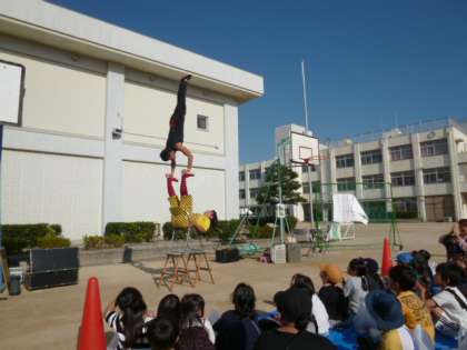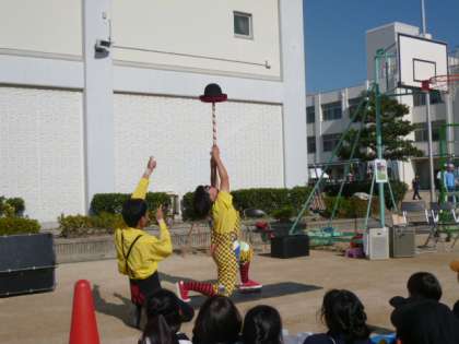 ジャグリングやマジック、難しい倒立の技などが繰り広げられました。お二人の息ぴったりの演技に、会場は大いに盛り上がっていました。