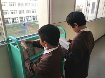 学級文庫を増設しました。先生達がみんなと同じ子どもの頃に読んでいた本とあって、興味津々です。