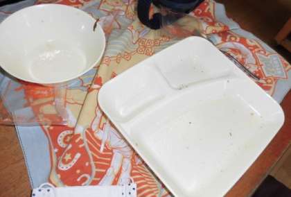 上の学年のお兄さん、お姉さんの真似をしてみんな食器をピカピカに完食してくれました。