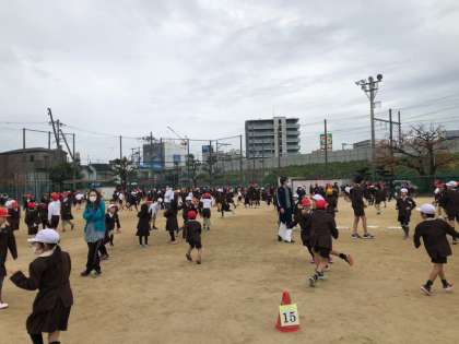 ちょっぴり冷たい風の吹く朝でしたが、みんな歓声をあげながら、おもいっきり楽しんでいました。