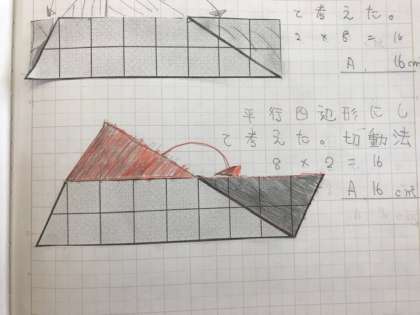 画像は、子ども達の思考の足跡と説明です。少しずつでも、積極的に人前に出て説明できるようになってくれることを期待しています。