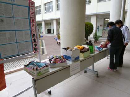 落とし物の陳列も行っていますので、お子さんのものかないかどうかご確認ください。(懇談会終了後、残っているものについては処分します。)