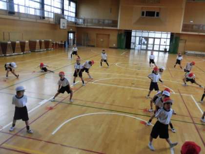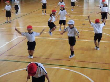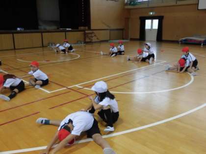 体育も活発に取り組んでいます。柔軟運動をしたり体幹の運動もしています。