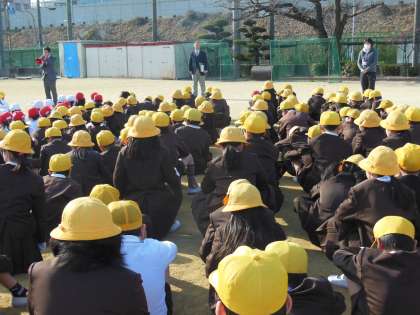 地震の発生を想定した避難訓練を行いました。子ども達は校長先生の24年前の1月17日の阪神・淡路大震災の話をしっかり聞き、地震について考え、避難訓練に取り組むことができました。