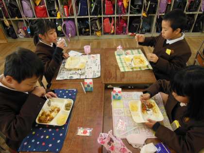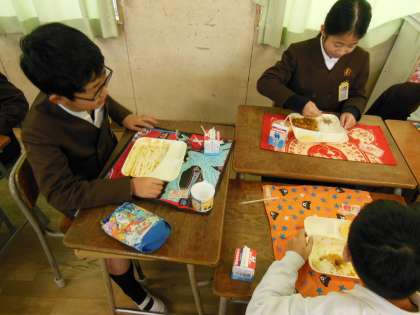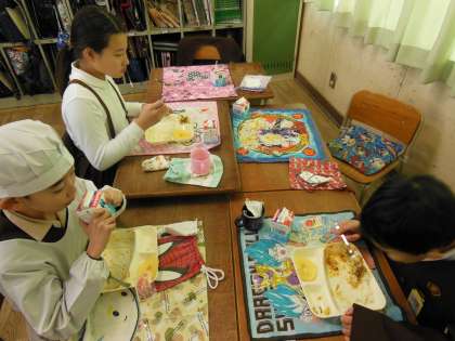 今日は3学期のピッカピカ給食大作戦でした。給食のメニューは豚肉と金時豆のカレーライス、ごぼうサラダ、パインアップルでした。みんな「おいしい♪おいしい♪」と言ってモリモリたくさん食べていました。おかわりする児童も多く、給食の食缶は空っぽになり、ピッカピカに食べることができました。