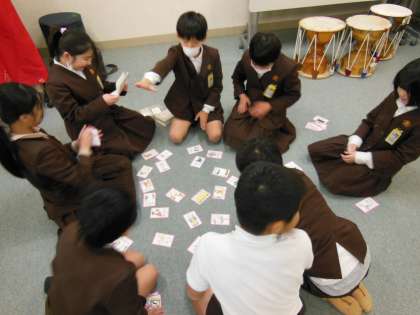ペンイやチェギ、ワールドかるたなど、班ごとに楽しく取り組み、最後に感想を聞くと、「ワールドかるたが楽しかった♪」「ペンイが楽しかった♪」など笑顔いっぱいで発表していました。
