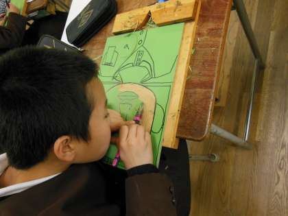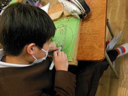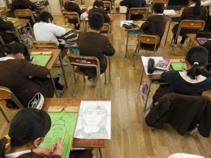 6時間目は、自分で描いた自画像を彫っていきました。5時間目に教えた彫り方で集中して丁寧に彫っていました。6時間目が終わると「次、いつ図工するの?」「早く図工したいな♪」という声が聞こえてきました。