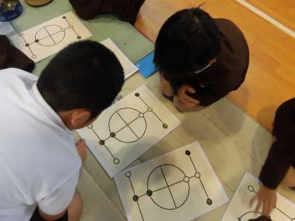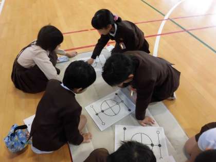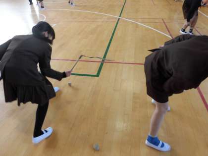 講堂では韓国朝鮮の伝統的な遊びもしました。今日は3クラスが合同だったこともあり、多くの友達と関わりあいながら遊びを楽しんでいました。