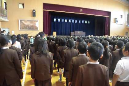 火曜日に、登下校を見守ってくださる見守り隊の方へ感謝の気持ちを伝えるありがとう集会に参加しました。