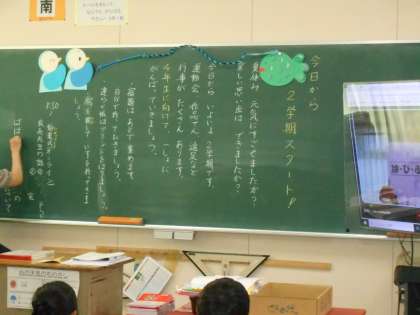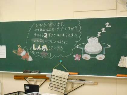 登校してくる子どもたちに向けて、担任の先生たちは黒板にメッセージを書きます。