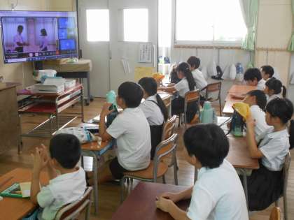 今日の朝会では、昨年度末、児童絵画・版画展に選ばれた作品の表彰がありました。