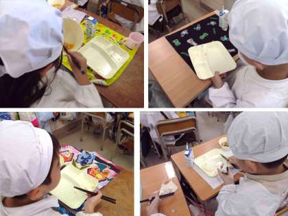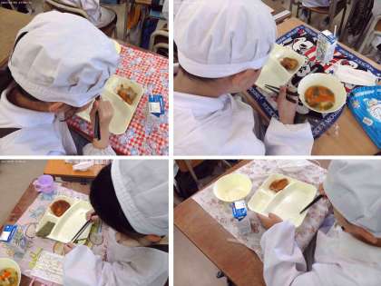 今日の給食では、みそカツが大人気でした。どの学級でも、「みそカツおいしい!」「最高にうまい!」「毎日食べたい!」などの感想が聞かれました。給食返却時にも、給食当番の「おいしかったです!!」という声が一段と大きくなっていました。みんな笑顔で返却していました。1年生には少しトンカツはかみにくいかと思いましたが、タレがかかっていてやわらかくなっていたので、「大丈夫、食べられるよ。」と味わっていました。焼きのりも人気があり、のりを巻いてごはんもしっかり食べることができました。