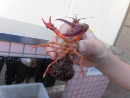 水槽を洗っていると、ザリガニのお腹にたくさんの卵がついているのを発見!!!!