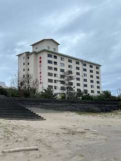 ホテル裏のビーチで朝のつどいを行いました。その後、全体写真を撮りました。