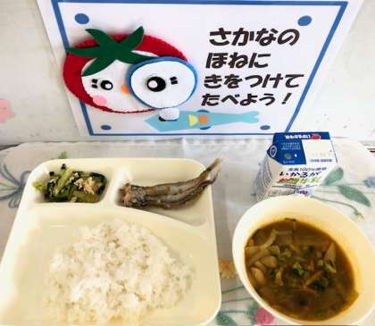 本校では、焼きししゃもからししゃものからあげに調理法が変更になりました。風邪やインフルエンザなどの流行する時期ですので、好き嫌いをせず、バランスのよい食事でしっかり栄養をとり、元気に過ごしてほしいです。