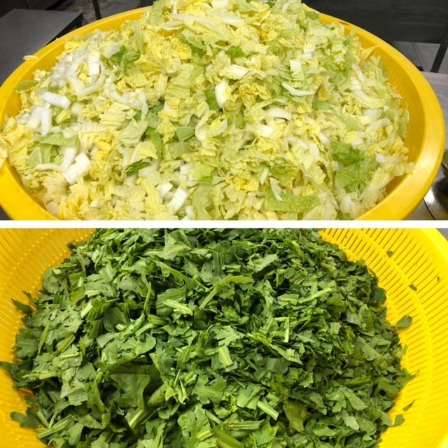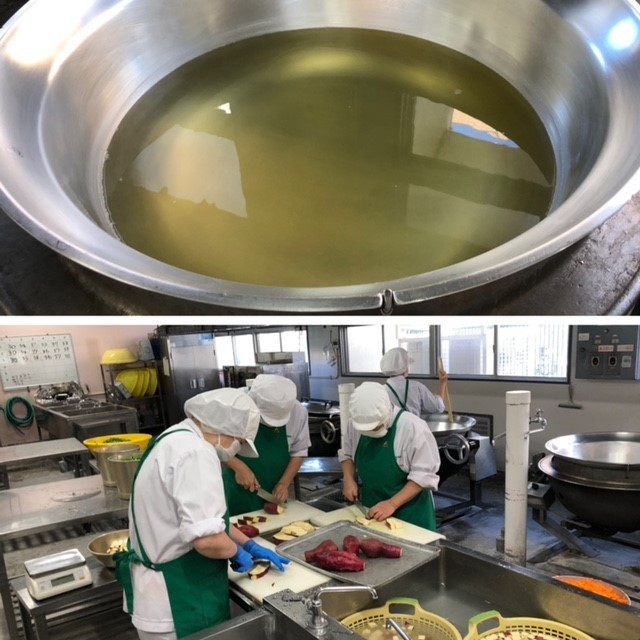 豚肉のしょうが焼きは、本校では焼き物機の故障により炒め煮に変更になりました。さつまいものみそ汁のだしは、にぼしでとっています。さつまいもは、徳島県産のなると金時が納品されました。きくなは大阪泉州産が、はくさいは和歌山県産が納品されました。きくなとはくさいをゆでて、砂糖、うすくちしょうゆを合わせたタレをかけ、いりごまをふっています。「今日の給食どれもおいしかった!!」「野菜がおいしかった。」などの感想が聞かれました。