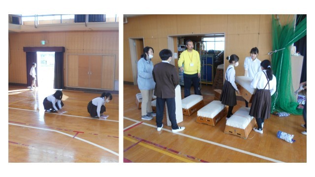 展示台にするひな壇や卓球台も力を合わせて出してくれました。