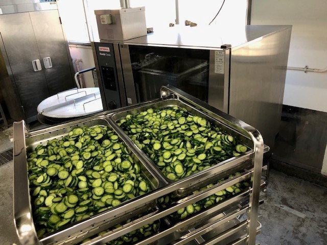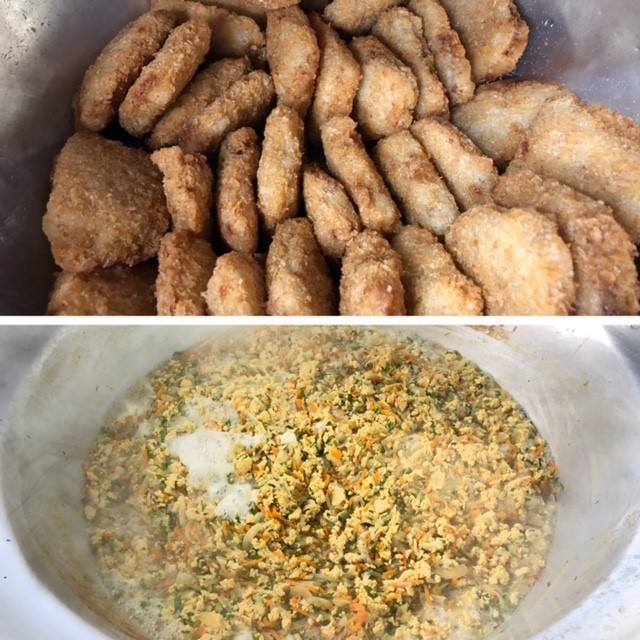 カツ丼は、本校の児童がずっと楽しみにしていた献立です。「給食のカツ丼、楽しみにしています。」と、ずっと前から給食室に伝えている児童もいました。やはり、どの学級でも大人気で、おかわりに行列ができていました。返却された食缶は空っぽになっていました。きゅうりは、焼き物機で蒸しています。蒸すことで栄養素やうま味が失われず、おいしいあえものでした。