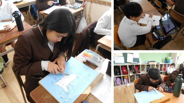 2組は木版画。2026年午年にちなんだデザイン画を考えたり、彫ったりしました。