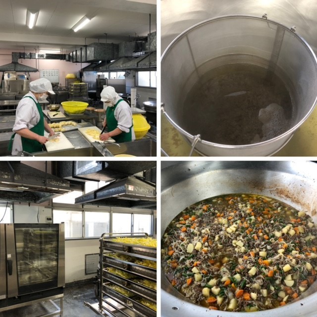 日本の家庭料理の定番メニューである肉じゃがを味わいました。しっかりと味がしみ、じゃがいもはホクホクでした。だしはけずりぶしでとっています。はくさいは焼き物機で蒸し、ゆず果汁を加えた調味液をかけてあえています。白花豆は、北海道産の白花豆を釜でじっくり煮ています。