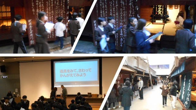 江戸時代の町並みや昔の道具を見学し、今の暮らしとのちがいを比べながら学びました。