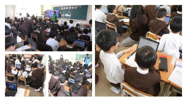 6年生がタブレットの使い方を教えに、1年生の教室に出張しました。