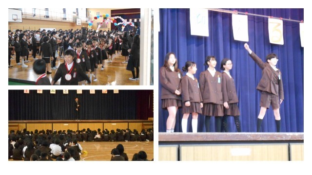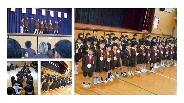 その後、6年生からお祝いのメダルを首にかけてもらったり、児童会の「スマイル!学校は不安なところじゃないよ」の劇を観たりしました。