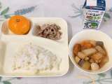 ・関東煮 ・れんこんの赤じそあえ ・みかん ・ごはん ・牛乳 ...