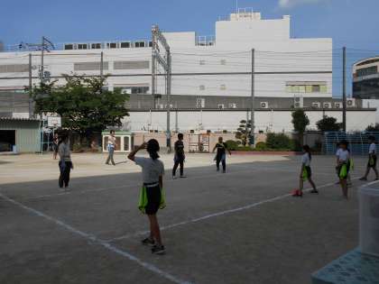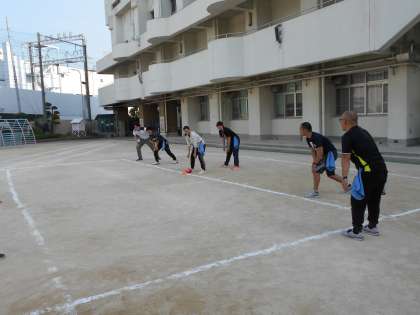 6年生でフラッグフットボールチームに入っている児童にお手伝いをしてもらい、ゲーム形式で行いました。