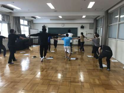 何度も曲に合わせて練習をしましたが、先生方も少々バテ気味。結構体力を使います。