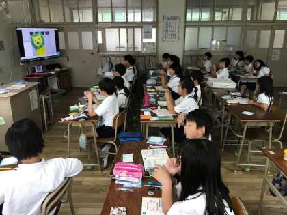 DVDを見た後に実際に正しい歯みがきを練習しました。