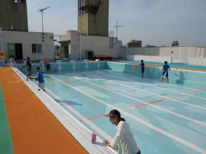 更衣室や階段などプールの時間に使うところをすべて準備しました。